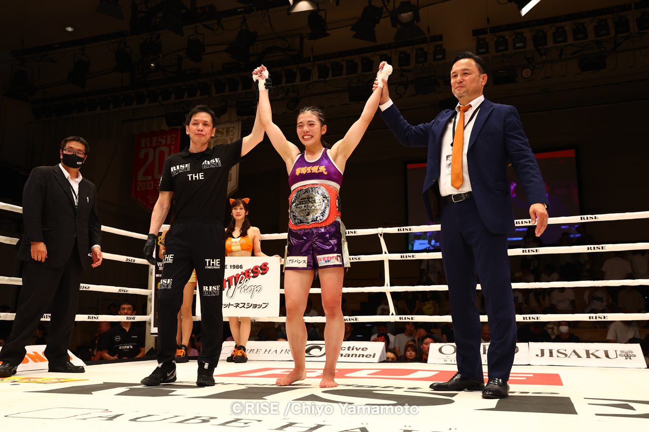 女子の新階級となるバンタム級でタイトルが新設され王座決定戦で村上悠佳と聖愛が激突。5ラウンドを通じ試合を制した聖愛が判定勝利し初代RISE QUEENバンタム級のベルトを獲得した。