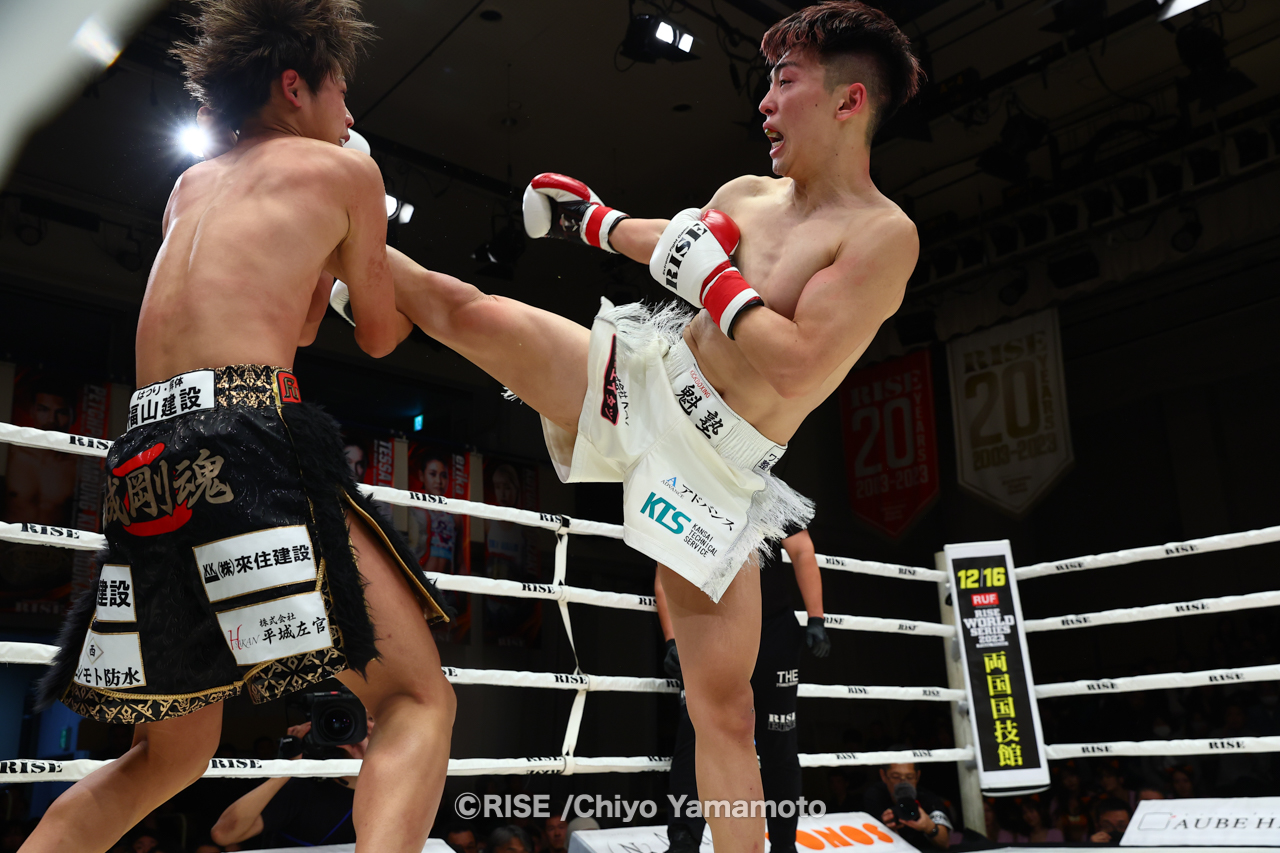 シュートボクシングと合体して行われたクリスマスの両国決戦。対抗戦ではRISE、シュートボクシングルールに両所属団体の選手が挑戦。そしてGLORYとの対抗戦RIVALSではRISEとSBのエース格である原口健飛と白鳥大珠、海人が勝利し3勝3敗のイーブンとなった。