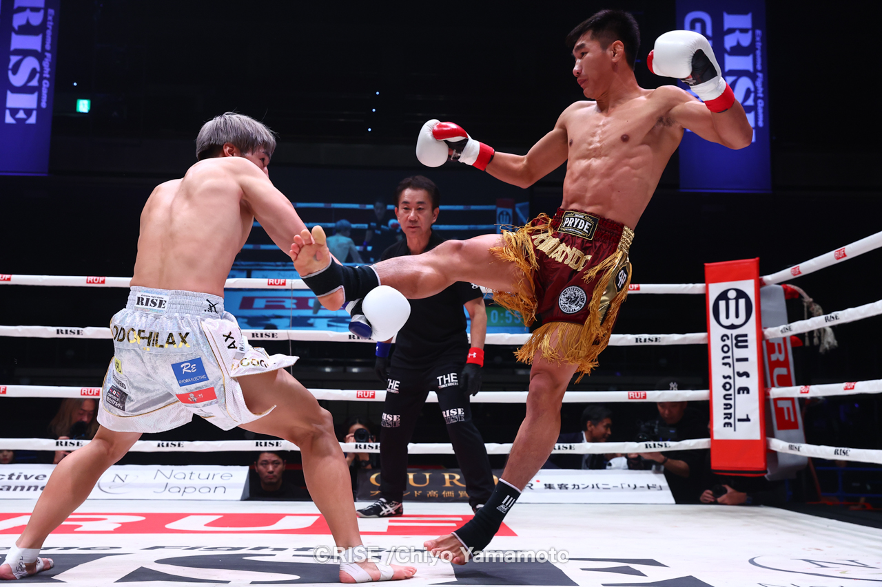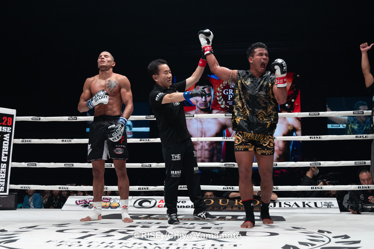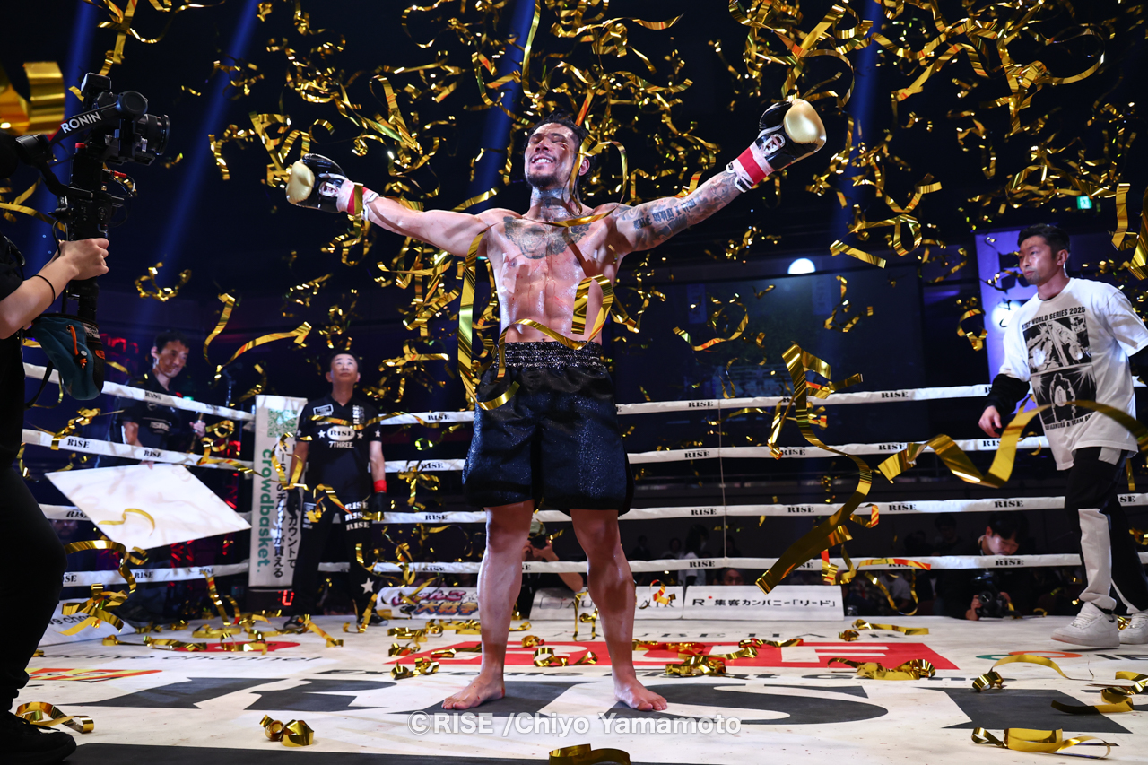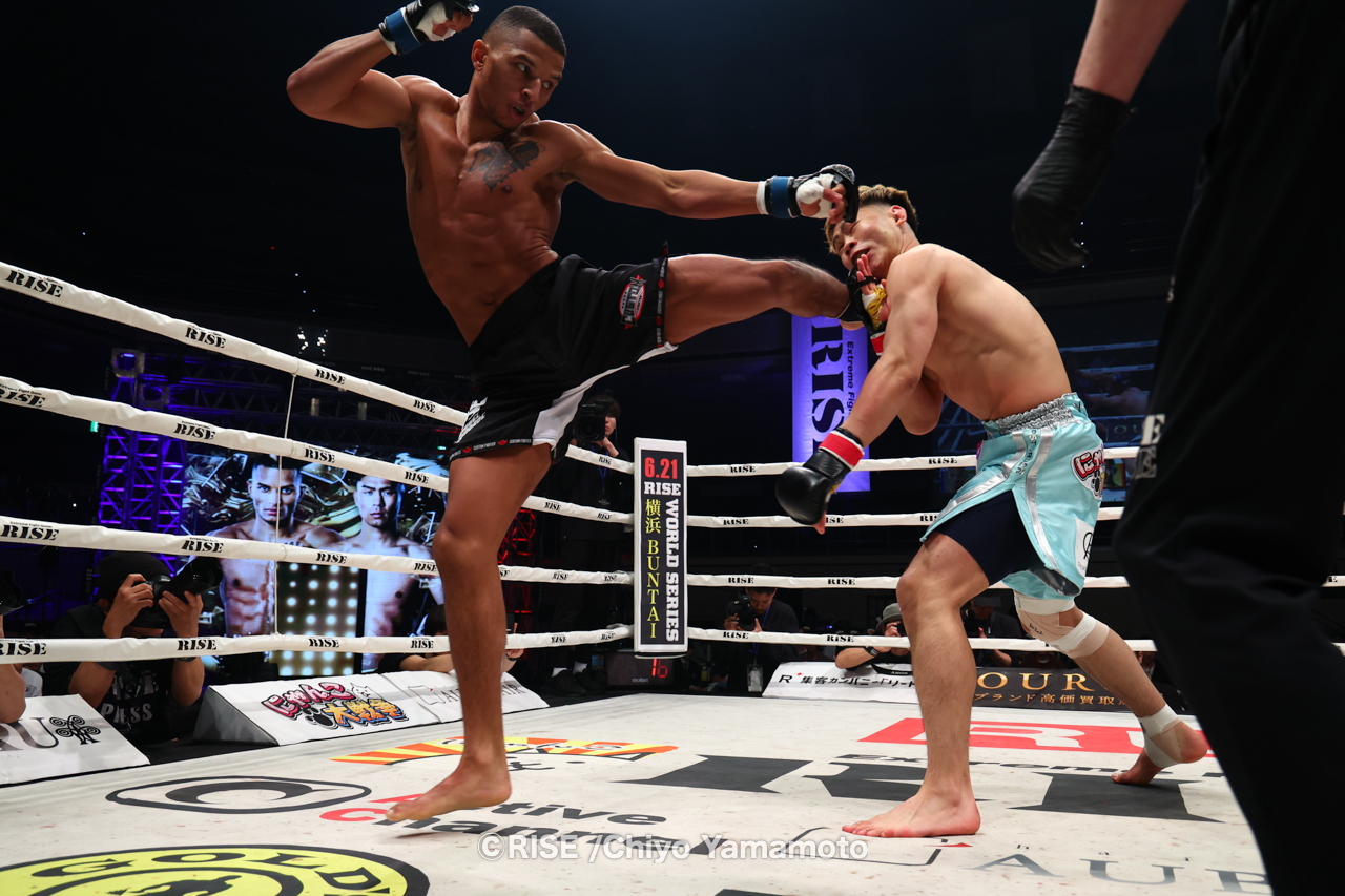RISE WORLD SERIESが横浜BUNTAIで開催。那須川龍心がメインでISKA世界タイトルを獲得するなか、-61.5kg世界トーナメント準決勝では中村寛と笠原友希が大激闘。中村が延長ラウンドでKO勝利を飾った。そして常陸飛雄馬を破ったエン・ペンジェーが決勝に進出した。