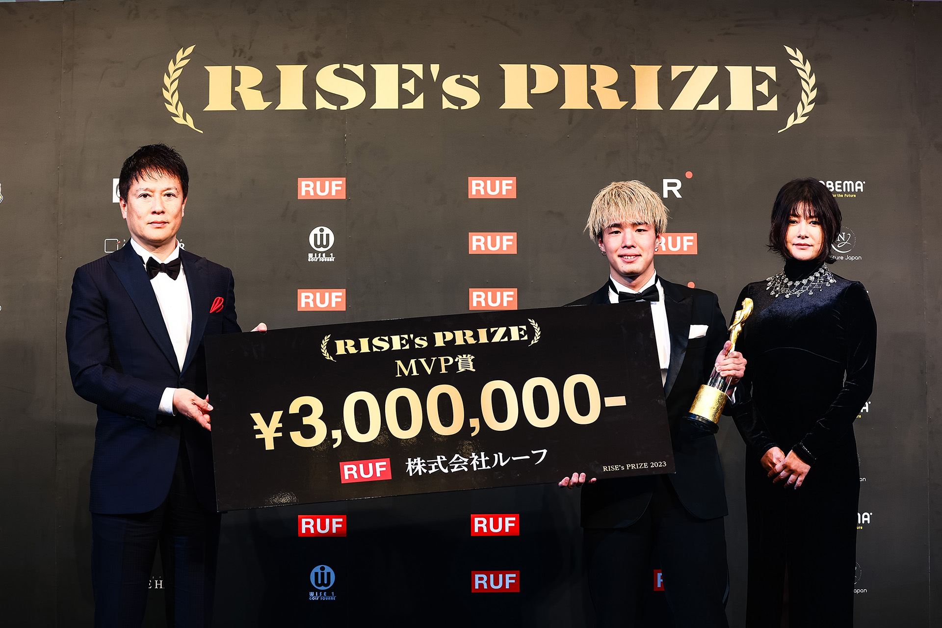 RISEの年間表彰式RISE's PRIZEが初開催。2023年のMVPはRISE WORLD SERIES 2023 -54kgトーナメントを制した田丸辰。そしてBest KO賞にはISKAタイトルマッチでバックスピンキックでKO勝利した大﨑一貴が選ばれた。