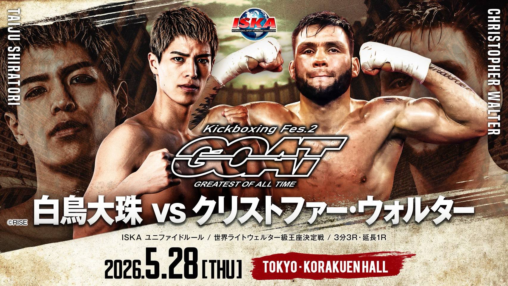 白鳥はISKAユニファイドルール世界ライトウェルター級王座決定戦でフランスのクリストファー・ウォルターと対戦する。