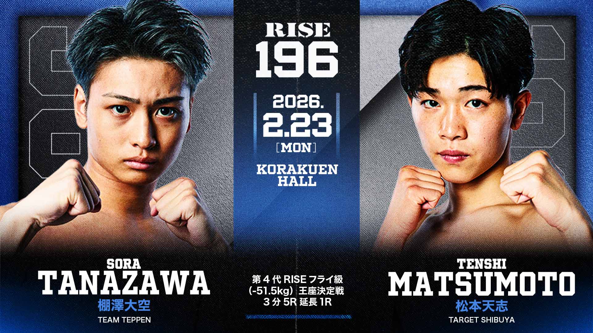 棚澤大空vs.松本天志のフライ級王座戦が正式決定!!23周年記念大会の対戦カード発表=RISE196