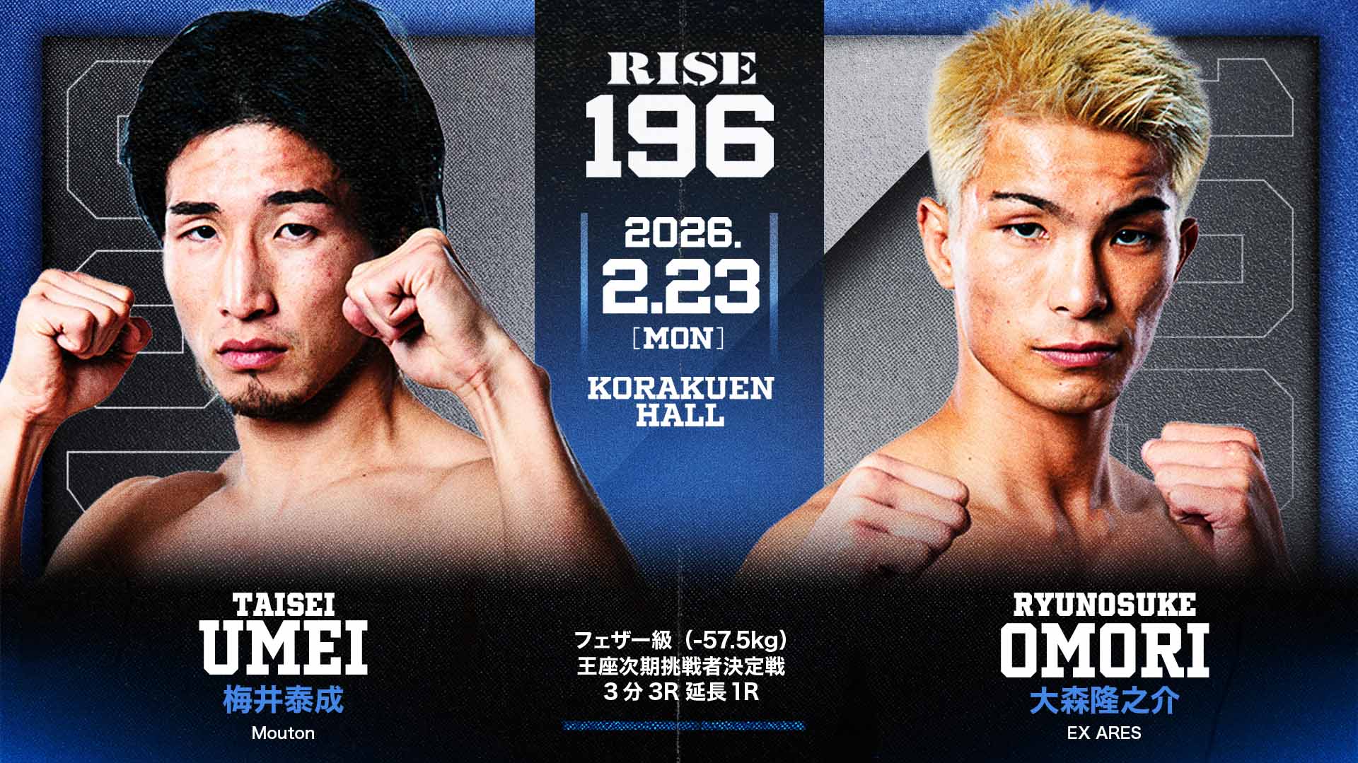 2025年10月19日(日)後楽園ホール『RISE 192』にてスタートした「フェザー級王座次期挑戦者決定トーナメント」、その挑戦権を掛けて梅井泰成と大森隆之介が対戦する。