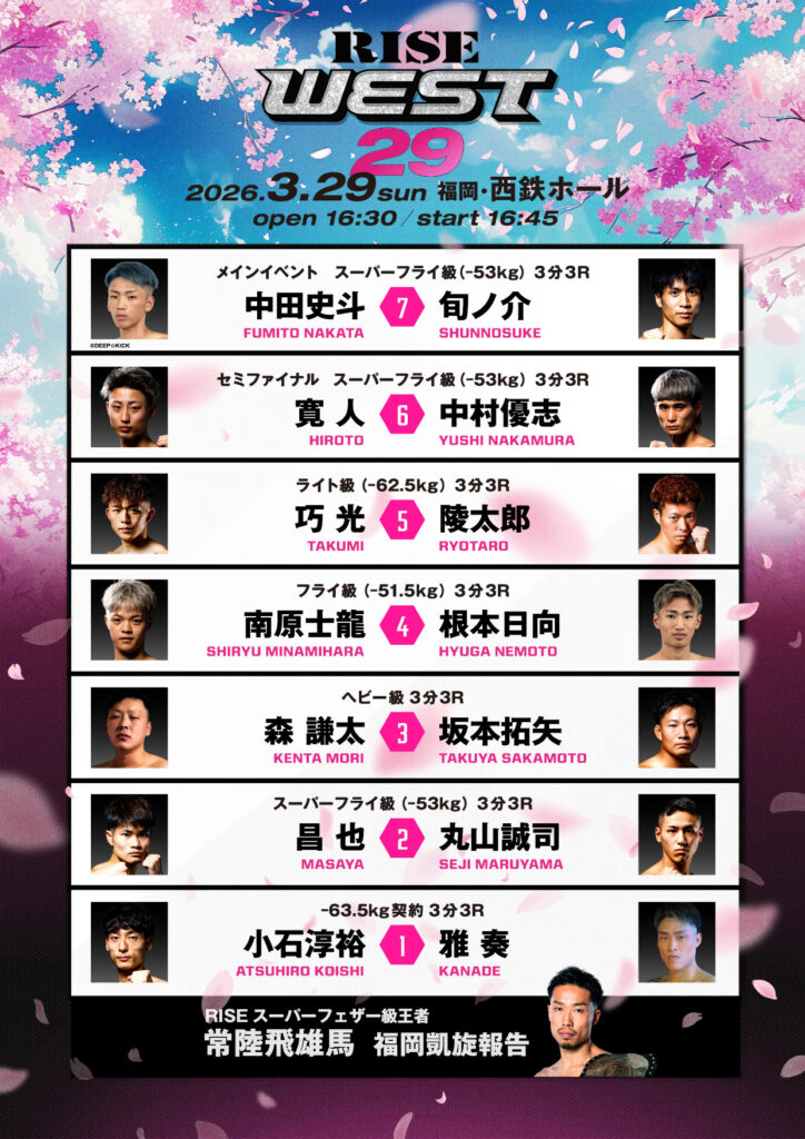3月29日(日)西鉄ホールで開催されるRISE WEST.29の追加情報をお知らせします。